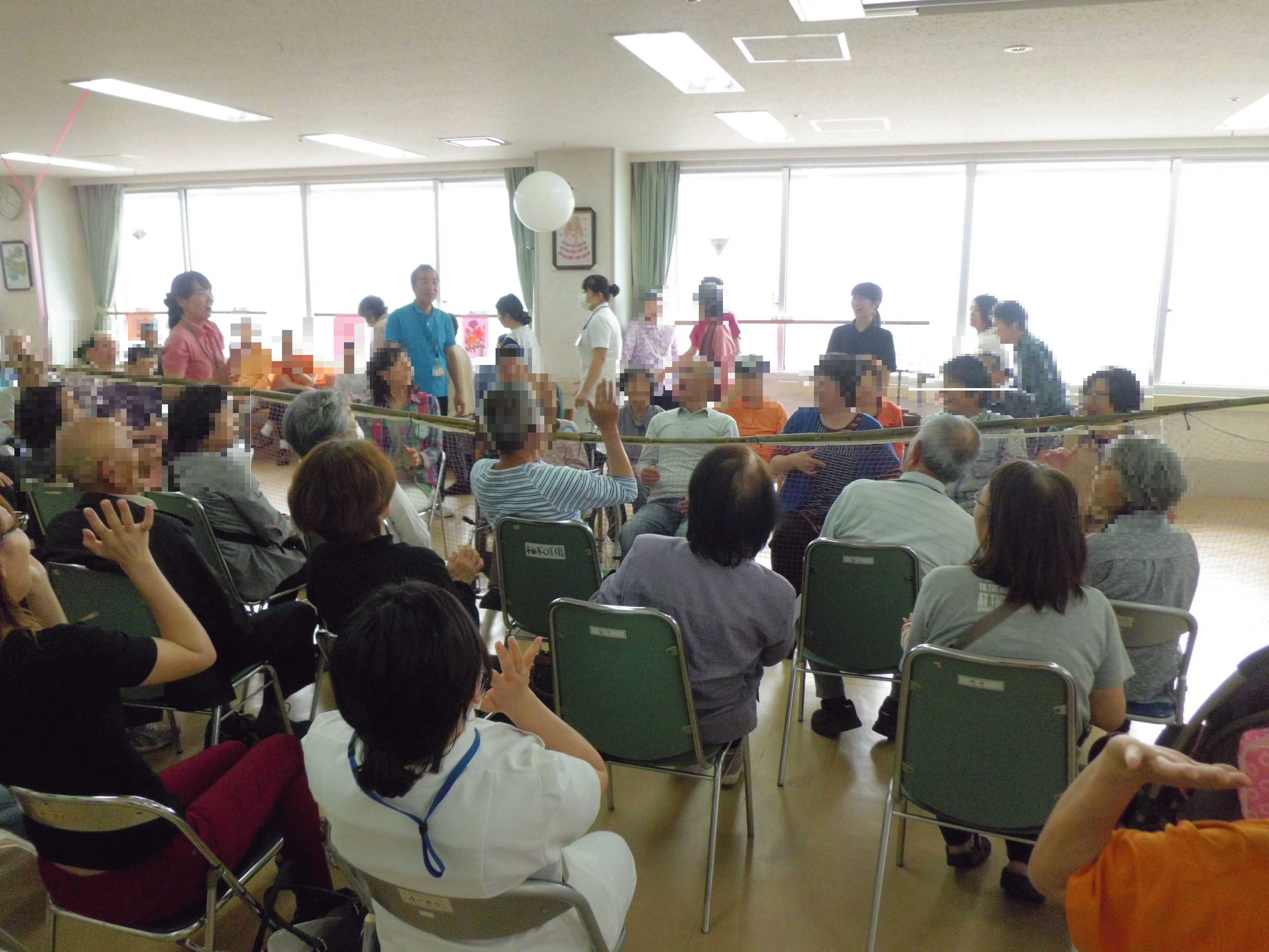 今年の種目は「風船バレー」。高齢で入院されている方から、若い外来通院の方まで沢山の方に参加していただきました。